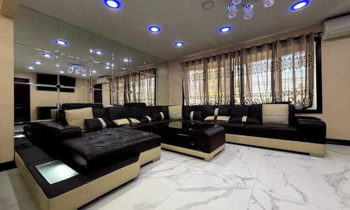 The apartment boasts three elegantly appointed bedrooms, each designed with your comfort in mind. The master suite is a private retreat, featuring a queen-sized bed with high-quality linens, a spacious closet, and an en-suite bathroom. The en-suite bathroom has a rainfall shower head, contemporary fixtures, and premium toiletries.