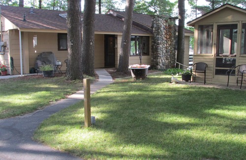 Amenities: TV (local channels), DVD & VHS player with a small VHS and DVD family library, Stereo w/CD player, fully-equipped kitchen, full-size refrigerator, gas stove, toaster, coffee maker, microwave, crockpot, outdoor gas grill, table w/umbrella in side yard, and a separate screened in enclosure for evening dining or playing cardgames & board games (also provided.) Chairs located on the deck, lawns, and by the water. Use of kayaks, rowboat, pedal boat, and canoe are free of charge. Cushions and life vests are also available for each guest.*