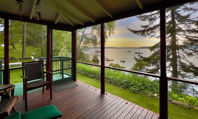 Classic oceanfront cottage and cabin on stunning 8 acres with sunset water views is located in Harpswell Center. Classic oceanfront cottage and cabin on stunning 8 acres with sunset water views provides accommodation, featuring Balcony/Terrace, Bedding/Linens, Guest Services, among other amenities. This Cottage features Balcony/Terrace, Bedding/Linens, Guest Services, to make your stay a comfortable one.