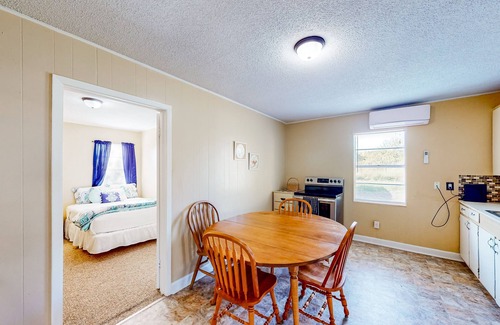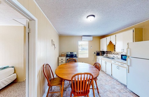 Back home, relax in this charming retreat where you'll find a full kitchen, a dining table for mealtimes, laptops, or rainy day board games, and a living area with a TV ready to stream all your favorite channels using your own accounts.