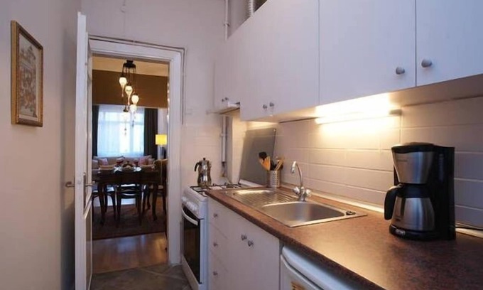 Apartment description - 2 bedroom newly remodeled apartment with 1 bathroom. One full bathroom, with shower, toilet, sink. Complete kitchen including oven, microwave oven and half-size refrigerator. Turkish carpets and duvet covers. All rooms with ceiling fans. Master bedroom has 150 x 200 cm bed (queen size). Second bedroom has two single bed (90 x 190 cm). 200 x 150 cm sofa-bed in living area.