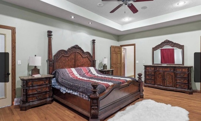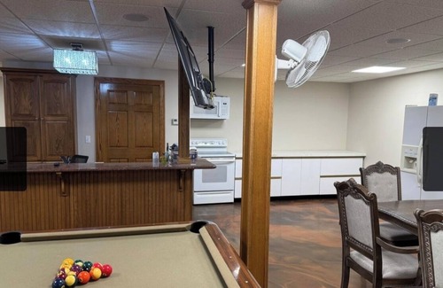 Located in Joplin, enjoy what this 7-bedroom house has to offer. With 2 king beds, 2 queen beds, and 3 twin beds, this gorgeous property provides ample space for all guests. The 5 bathrooms feature both showers and jetted bathtubs for a relaxing stay. A cozy living room with 2 sofa beds offers additional space for lounging. 2 full kitchen pool table , 2 air hockey ,fuss ball , ping ball Play station , sprung system up stairs & down stairs 3 refrigerators Our place will help you feel at home while you're traveling in Joplin. And a lot more