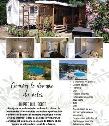 Claude et chris536 is located in La Roque-dʼAnthéron, just 27 miles from ITER / Cadarache and 30 miles from Parc des Expositions Avignon. Guests can benefit from a terrace and a seasonal outdoor pool. Guests can use a bar. The air-conditioned campground consists of 1 separate bedroom, 1 bathroom with a hair dryer and free toiletries, and a seating area. Towels and bed linen are featured in the campground. The property has an outdoor dining area. You can play table tennis at the campground, and the area is popular for cycling and hiking. Marseille Provence Airport is 26 miles away.