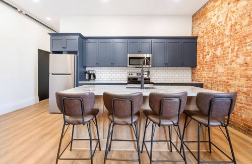 This newly renovated open floor space offers brand new finishes from floor to ceiling. Clay Street Suite, located within the Historic American Hall building, is equipped with two private rooms with queen beds. The suite also has one bathroom with tile flooring. The living room boasts exposed brick while the kitchen has new appliances and quartz countertops. Your location in historic downtown Millersburg will allow you walking access to local restaurants and shopping. Elevator available on site.