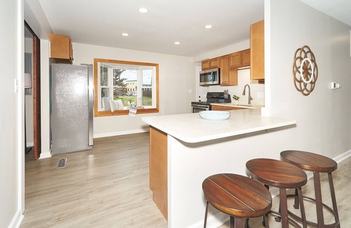 This 1300 sf ranch just went through a full remodel. Bathrooms have been updated but are on the small side. Washer and dryer are available in the hallway laundry closet. TV's are connected to WIFI so bring the passwords for your streaming services.