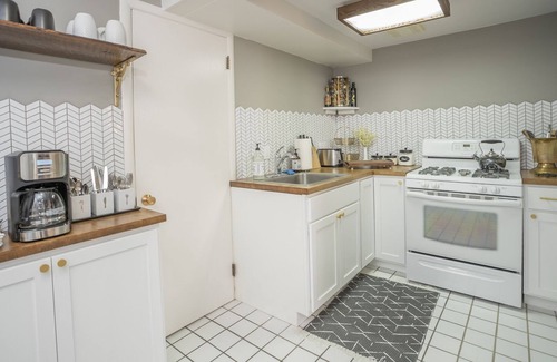 Welcome to our mid century-modern remodeled apartment! Gas range in the kitchen; free Keurig coffee, updated appliances. Top-rated mattress, comfy hide-a-bed sofa. Super-fast gigabit WiFi, included Netflix and Amazon streaming, and a WiiU gaming system!