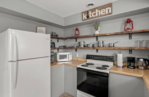 ✔ Fully equipped kitchen with electric stove, oven, and coffee maker