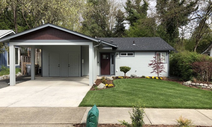 Fully furnished property available for short-term stays in Grants Pass, Oregon. You will be staying in a comfortable 1050 square foot home. Two bedrooms and one bath can accommodate up to four visitors. The full kitchen is stocked with everything you would need to cook and bake, and there is a clothes washer and dryer for personal use. Wifi is included, as well as cable television. A quiet backyard with deck overlooks a small creek. A single car carport is attached to the home. Washington Blvd. is near to numerous town parks, and offers close walking distance to the historic downtown district. Perfect home for a visiting professional or small family visiting Southern Oregon.