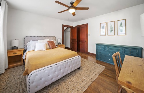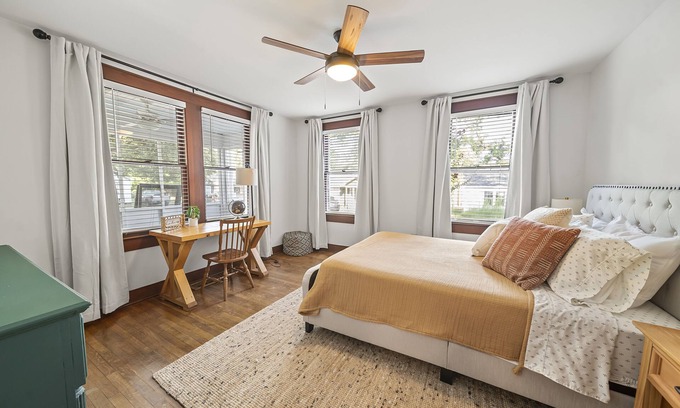 Ceiling fan plus additional fan stored in closet (Central AC works great, but I like to sleep with 2 fans and maybe you do to!)