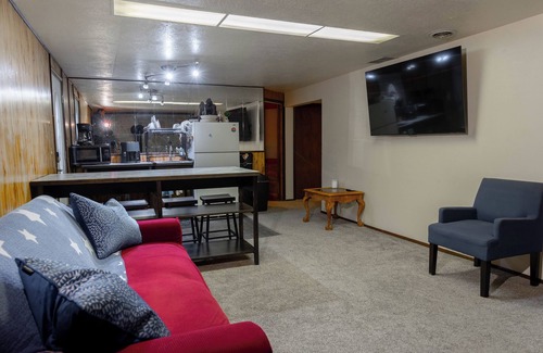Nestled right off the freeways in Pocatello, this delightful house is a fantastic retreat for guests. With 2 cozy bedrooms including a king bed and bunk bed, Big screen TVs as well as a relaxing bathtub in the bathroom, this welcoming property offers a perfect stay, Rest And Relax. Enjoy the convenience of AC, WiFi, close to the freeway and many shopping amenities. Experience the comfortable lounge of Pocatello at our house. Even got a love sac!!