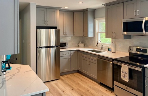 Relax, explore & enjoy! Your family will be close to everything when you stay at this centrally-located place. 3 bedroom, 2 full bath home with a pool & sun room. Main bedroom located on ground level floor. Short walk to the private beach, backed up to local vineyards. House equipped with beach chairs, linens, soaps & other essentials.