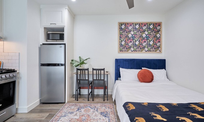 MESSAGE US & ASK US ABOUT OUR MONTHLY DISCOUNTS! Welcome to our newly renovated studio in the peaceful neighborhood of El Segundo, a short 5 min drive from LAX and the beach and walking distance to downtown El Segundo w/ restaurants, breweries, coffee shops & more! Despite its small size, this thoughtfully designed space offers a cozy and functional stay, perfect for traveling professionals.