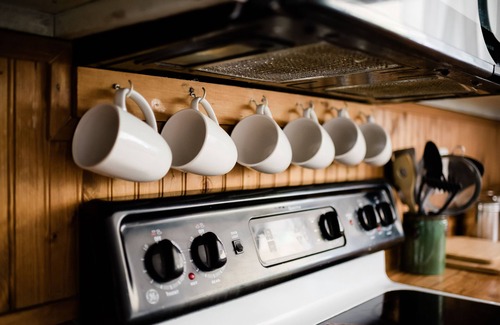The kitchen is well appointed with all the appliances needed for preparing meals at home, including a Ninja blender, rice cooker, toaster, coffee pot, (with coffee) George Foreman grill, tea kettle (with variety of teas) electric juicer, crock pot & bread maker. Includes pots, pans, dishes, glasses, cups, utensils, and most spices and herbs.