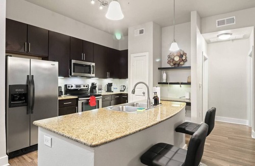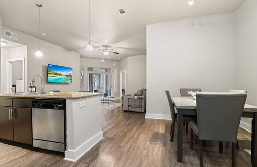 Experience serenity in our 2BR-1B luxury apartment conveniently located minutes away from Houston Methodist Clear Lake Hospital, Space Center Houston, and Nassau Bay Town Center.