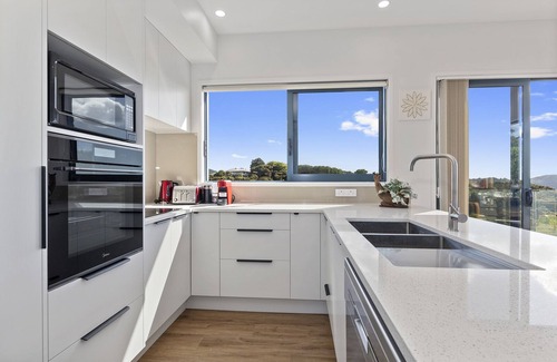 This elevated Ngunguru accommodation is a fantastic spot for your next holiday escape no matter the season. Make yourself at home in the spacious open-plan living-dining area, drenched in natural light thanks to the large picture windows, offering a bright and refreshing feel for your stay.