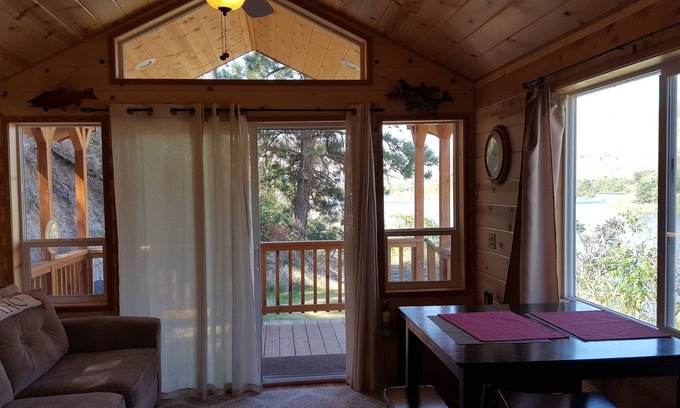 Our private little cabin is right on the Clearwater River with great views in all directions! You can just relax on the patio or spend time fishing and enjoying the property. It is great for couples who want to get away, solo adventurers, families (with kids), and perfect for short or long term fishing trips. From mid August to February the Steelhead fishing in the Clearwater River is excellent, with world class fly fishing for steelhead right out the door. "Hana Pa'a" or Fish on!!!