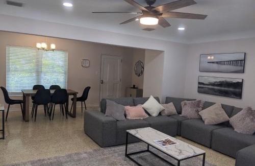 Clematis House near Arlington Park with Heated Pool offers accommodations in Sarasota, 6.9 miles from The John and Mable Ringling Museum of Art and 3 miles from Sarasota Opera. This property offers a private pool, free Wifi, and free private parking. The vacation home also offers an indoor pool and a garden for guests to relax in. Offering a terrace and pool views, the spacious vacation home includes 3 bedrooms, a living room, flat-screen TV, an equipped kitchen, and 2 bathrooms with a shower. Towels and bed linen are featured in the vacation home. The property has an outdoor dining area. Marina Jack Restaurant And Marina is 3 miles from the vacation home, while Sarasota County Visitor Information Center And History Museum is 4.4 miles away. Sarasota Bradenton International Airport is 6.8 miles from the property.