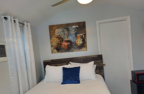 The kitchenette is equipped with a refrigerator. Connect to the free WiFi, or get cozy in front of the TV. Bathroom amenities include a hair dryer and towels.