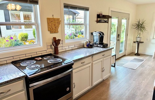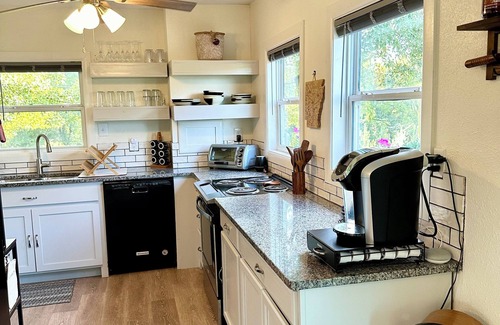 Huntsville Arkansas Ozark hills are waiting for you at this cozy yet modern 2-bedroom guest house cabin. Situated on the cliffs of the War Eagle Creek, you can experience seasonal views of the two converging creeks below and the rolling hills of hay and cattle. With 1 full bed, 1 king sized daybed, and 1 queen sized fold out floor mattress, this cozy retreat offers a welcoming living room with an extra twin cot for additional space to comfortably fit 5-6 guests. This would be a great stay for a nature loving family with kids. The upstairs has a new addition of a game room with bumper pool, electric darts, ring toss, fooseball, shuffleboard, and many additional board games to keep kids entertained for hours. Explore the properties 20 acres with trails down to the water front of two adjoining creeks, natural beach, and even a large cave to traverse. Fish for bass in the creek or rent kayaks nearby to paddle the popular War Eagle Creek below, or relax in the cliffside garden with a cozy fire table for chilly evenings. This is a nature lovers paradise with ample bird watching, numerous eagle sightings, and the ability to visit our goats on the property. Enjoy the convenience of AC, heating, high speed WiFi, and a washing machine during your stay with all soaps and bedding provided. The kitchen is fully stocked with all cooking and baking supplies and spices you might need. Please note the property sites adjacent to the hosts home. We are a young professional couple, and although you may see us come and go, we value our guests privacy and need for personal space above all else. If you need anything during your stay, however, we are available at a moments notice for assistance.