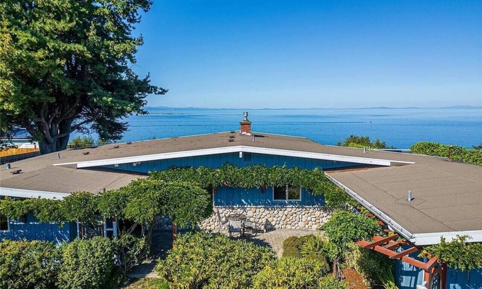 As you enter the front gated yard, you are transported into another realm as you're greeted by a large wisteria, picturesque garden, and your first views of the ocean. Here you can sip a warm latte in the morning while watching the first light glisten on the sea. Then you spend the day hiking Olympic National Park, exploring downtown Port Angeles, or visiting one of the many seasonal festivals. For a restful day, you relax or play in the large backyard as the ships come into the port. Arrive home at night to grill up a feast on the Blackstone grill. To finish the day, surround yourself with loved ones around the large stone fireplace while you gaze across the sea at the sparkling lights of Victoria.