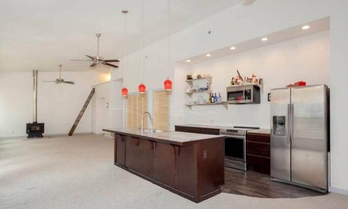 The home is very unique and beautiful. Open floor plan with the Northwest wall of glass that opens with double 9ft doors to bring the 30'×15' deck and beautiful view to the focal point of it's design. 2 full bathrooms and bedrooms plus a large sleep loft overlooking the great room with a hideaway nook with full bed next to the traditional wood stove which is functional but not necessary. The new HVAC system and smart systems are controlled with a central touch screen that can be adjusted remotely so coming back to a cold or hot house is unnecessary. The Kitchen and Laundry are all fully functional and integrated by Samsung Electronics Washer/Dryer/Stove/Oven/Dishwasher/Microwave & Refrigerator/Freezer.