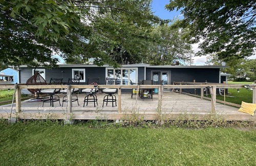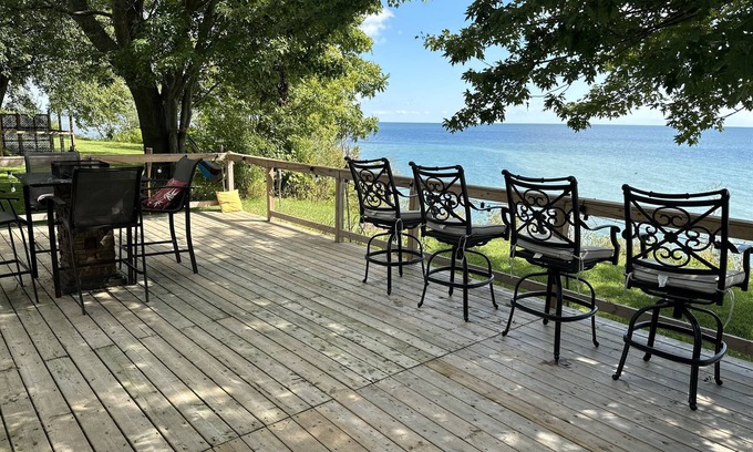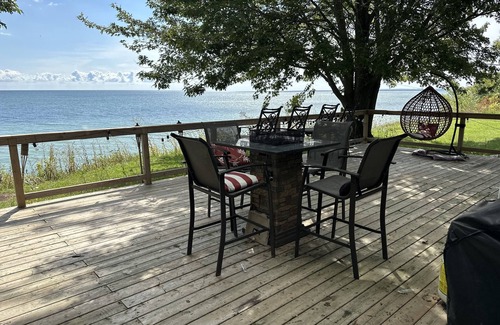 Beautiful sunrise to a beautiful sunset. Breathtaking view of Lake Erie. Fully renovated with four bedrooms, living room and dining area full kitchen that has everything you need. A gas fire pit in the backyard facing towards the lake and I would fire pit in front of the house.