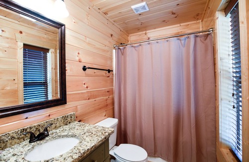 Our Lakeside luxury cabin has a huge kitchen with granite countertops and 2 islands, 2 refrigerators (one downstairs), two dishwashers, two microwaves, large dining area, gas grill, expansive decks, 2 giant hot tubs, movie theatre, wifi, full size washer and dryer, multiple group seating areas, and more.