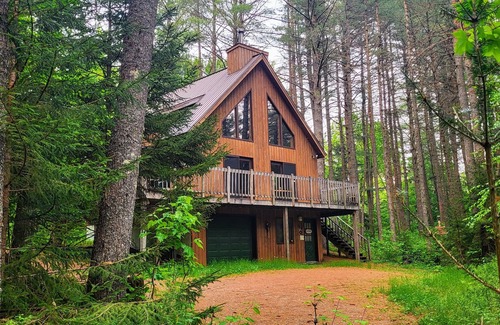 This pristine relaxing retreat was built to view the sun, the moon, wildlife, and the trees. Nestled in a mature, private pine forest, this well cared for property boasts abundant wildlife and a network of walking and skiing/snowshoeing trails which take you past wetlands, cliffs and a variety of forest types.