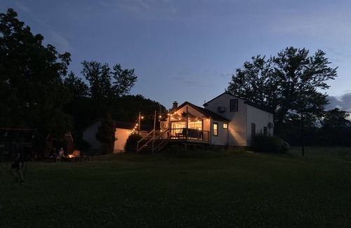 Enjoy a place that can fit your large family, church retreat, and or a friends' getaway! Short 5 minute stroll to Sandy Bottom beach. It has a large yard with a firepit for campfires, with free wood provided. Play the provided badminton, croquet, and lawn games! There is a peak-a-boo view of the lake during the summer months and a wide view from the living room after the leaves fall. The house is conveniently located at the north end of the lake and has full access to Sandy Bottom beach. Play in the crystal clear water with boating, swimming, fishing/ice fishing, and relax on the lifeguarded sandy beach. Take a few-minute stride to the playgrounds, basketball court, pickleball court, nature trail, and sandy beach. Relish at the night sky while star gazing with Bortle 4 sky.