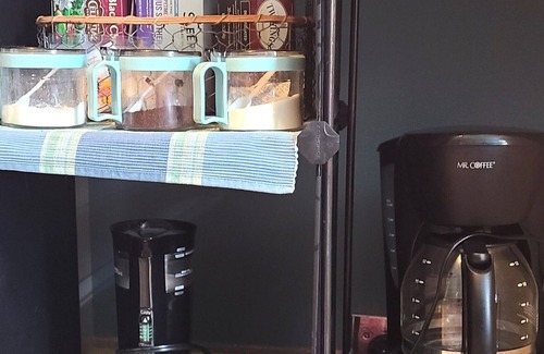 Details, Details, Details - this apartment has sooo many! And The vibe is a little bit spa (Natural oil diffuser and Shiatsu Shoulder & neck & foot/leg massagers, sound machine, cozy robes) and a little bit romance (4 poster bed with fairy lights). Property is one half mile from the beach and two miles from downtown. A very nice street to stroll down to the beach! Quiet residential neighborhood. Please note the kitchenette has a two burner hot plate, microwave, refrigerator, toaster oven. Please understand this kitchenette isn't designed for daily full meal cooking.