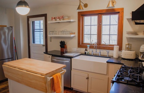 Families and friends will enjoy the peaceful nature of this historical home. Cook a delectable meal in the newly renovated kitchen. Eat dinner or play a game around the large dining room table. Sink into the large leather sofa while you watch TV. The office couch also doubles as an extra bed, with linens! The yard is large enough to toss a ball or throw a frisbee.