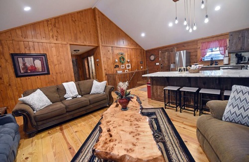 This cabin is an absolute delight! Nestled in a breathtaking setting, it's clear that the host has poured their heart into every detail. From a fully stocked pantry to exquisite room themes, you'll be in awe. The outdoor porch and grill are a dream, and the host even provides s'mores for the fire pit, which is the ultimate treat. This place caters to all ages, and I wholeheartedly recommend it. The hosts are incredibly friendly and generous, making it an unforgettable experience.