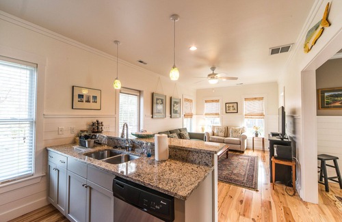 This brand new, super clean, quiet and conveniently located home is an ideal place for a large family or two couples to share. It has two bedrooms with nice comfortable queen beds, two full baths, plus a queen sized pull out sofa bed in the living room. One bedroom is a master with a bathroom (shower only), the other bathroom is in the hallway outside of the second bedroom (shower/tub combo). It is lake front, 5 minutes from Folly Beach and 15 to 20 minutes from downtown Charleston. This neighborhood is a collection of eclectic homes surrounded by marsh and tidal creeks where Moms walk with strollers in the evening and children ride their bikes after school. Full kitchen, dining room and living room. Dishwasher, washer and dryer, cable and WiFi. Regular drip coffee maker, and a K-cup coffee maker. Front porch on the street side, and back patio overlooking the lake. Plenty of outside seating. Plenty of parking. Cotton sheets provided! Harris Teeter within walking distance. Fully stocked with pots, pans, and kitchen utensils for cooking in. Surrounded by restaurants in both directions. Nicely decorated. Paper products, soap, garbage bags, and detergents provided for hassle free traveling. Enjoy Folly Beach, downtown Charleston, and everything in between, then relax in a quiet and comfortable home. Open the windows for a nice lake breeze! Fishing allowed in the saltwater lake. Bring your gear and catch your dinner!!!