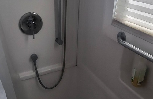 - shower pressure is not powerful. You'll be clean, no worries.
