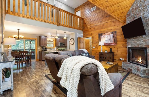 Don't wait! Book Whispering Pines Lodge now! This spacious, rustic lodge is located in the popular gated community of StoneBridge Resort and has 4 master suites with a jetted tub and shower in each bathroom.
