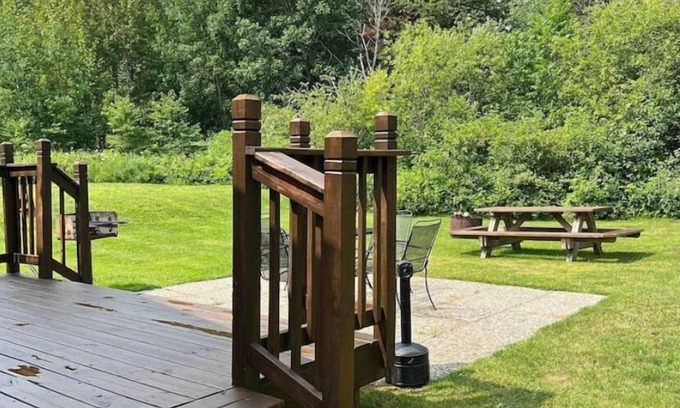 The cabin offers a main bedroom with a queen bed and a smart TV. The second bedroom has a single over full bunk bed and a Murphy bed for extra guests. There is also a sofa bed in the living room. Extra pillows and blankets are provided to keep you cozy and warm after a long day on the trails. The kitchen is fully stocked with all the utensils, pots and pans you will need to prepare a home cooked meal in your home away from home. There is a barbeque and outdoor dining area as well.