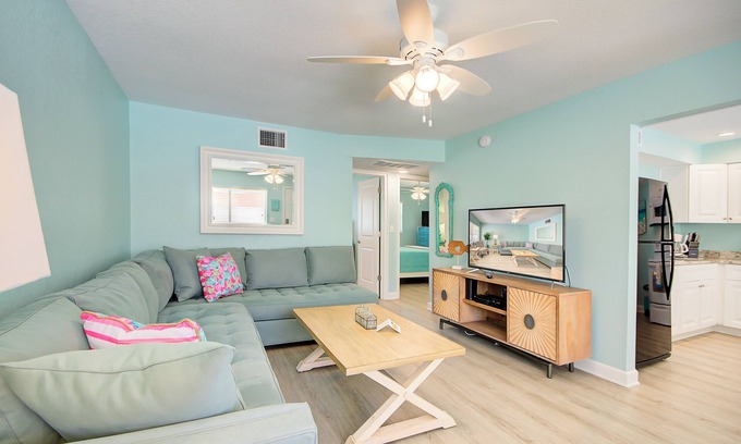 This beach themed bungalow is located in the hub of Indian Rocks Beach. Within walking distance to everything you need and steps to the Gulf of Mexico Beach. This relaxing retreat is one of only two units available (convenient if you want to bring more friends or family). It was newly remodeled in Spring 2019 with new furniture and stocked with all the comforts of home. Plus a NEW 3 hole mini golf putting green was just installed for our 2022 guests!!!