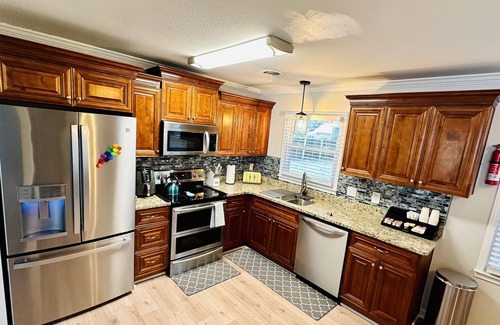 The Peninsula Cozy Oasis is the ideal place for you to retreat, relax, and reset yourself! Consider this the ultimate home away from home with all of the perks and none of the stress! This quaint 3 bedroom 2 bathroom rancher sleeps up to six people with a hint of comfort in every single room. It is a mini-retreat especially designed for you to come alone, or with your family to enjoy the beautiful city of Newport News! This fully furnished home is equipped with free wiFi, new appliances, smart TV access, outdoor sitting terrace, game room, charcoal grill, along with a fully equipped kitchen! Whether you are here visiting for a few days or decide to enjoy our Cozy Oasis for months, this beautiful location is also the best location to enjoy local shops, restaurants, museums, hospital locations, military attractions and so much more! Don't want to go out? The Oasis has everything you need in our fully equipped kitchen to make an Expresso with our Keurig in the morning or create an at home dining experience at night. So come enjoy this beautiful home and allow us to help you create amazing memories that will last a life time!