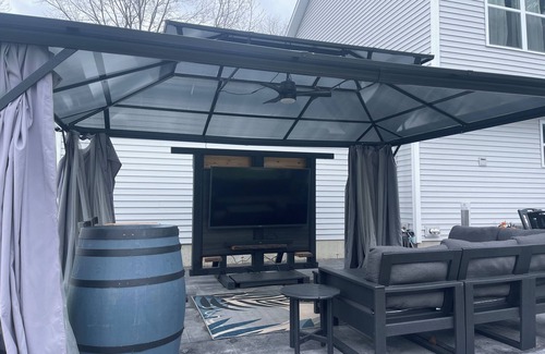 The house has 3 bedrooms with smart tvs and access to all the major apps, 2.5 bathrooms. Pet friendly with fenced in backyard and indoor dog bath. Outside there is a patio with built in fire pit and grilling area along with access to yard games and dog toys