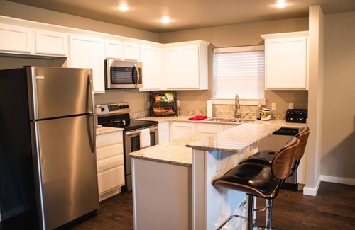 Enjoy time with your friends and family while taking in a Hogs game, concert at the AMP, mountain biking, or Bikes Blues & BBQ. Located minutes from the U of A, Centennial Park and other bike trails, great restaurants and shopping. We try to think of everything to make your stay feel like home including memory foam mattresses on every bed, snacks, games, fast internet, local artists’ works and a huge TV in the great room. We hope you leave saying “This feels like home”.