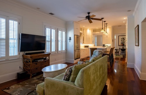 Sunny days are best spent out on the spacious outdoor deck surrounding a sparkling, heated pool and natural beauty of swaying palms all around. Cool off under the retractable awning and enjoy your fresh catch al fresco with seating for 6. Just a short distance to the sandy beaches of Key West and all the adored attractions, this home is the ideal destination for island perfection.