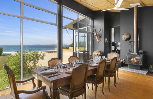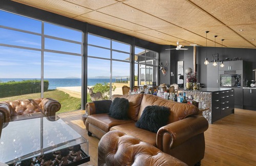 Located in the seaside settlement of Karitane, just on the outskirts of Dunedin is where you will find this stunning holiday home. Thoughtfully decorated with gorgeous New Zealand art and luxury decor, you and your group will find something to marvel at and enjoy in every corner. Show off your cooking prowess in the spacious and fully equipped chefs kitchen, then sit down with your group to enjoy your meal. With floor to ceiling windows in almost every room, the backdrop to your holiday will be sun rises over the water, blue skies and the white sandy beach all at your front door. Cloud 9 retreat sits just behind the bank of the beach, so you have your private access to the beach from the large lawn. A morning stroll, with your cup of your coffee along the beach, is just that easy!
