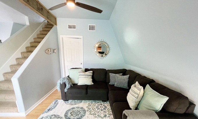 Cozy & blue A frame style getaway located in holiday beach Rockport . Enjoy a relaxing stay in the 2 bedroom 2 bed 2 bath coastal escape. Fully furnished and ready to enjoy summer nights. Located 10 min from Fulton beach.