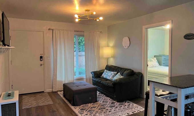 This unique coastal suite has a style all its own. Overlooks the botanical garden. Brand new renovations, complete overhaul. One bedroom separate/private space with bathroom, kitchen, living room, large windows. Fresh, clean, and cozy!