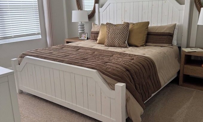 New Smyrna Beach is waiting for you at this 4 bedroom featuring 1 primary en-suite king bed, 2 guest bedrooms queen beds , and 2 twin beds in bedroom. the 2 bathrooms both with a shower and one Shower/bath combo. Nature And Bike trails, pickle board courts, pool, playgrounds, multiple public golf courses in area, beach, shops, restaurants, easy access to Central Florida Attractions, long term rental accommodations available additional services provided