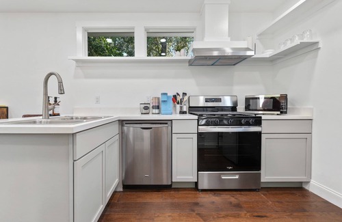 This stylish and modern studio is the perfect retreat for relaxation and comfort. Enjoy the thoughtfully updated space, complete with a full kitchen stocked with cookware and bakeware, so you can prepare meals with all the conveniences of home.