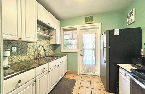 Inside, the cottage features a king bed, two twin beds, and a full bathroom, with TVs and Netflix, plus complimentary Wi-Fi throughout. The fully stocked kitchen has all the essentials for cooking at home. You’ll also find a washer and dryer, along with beach chairs for your seaside adventures.