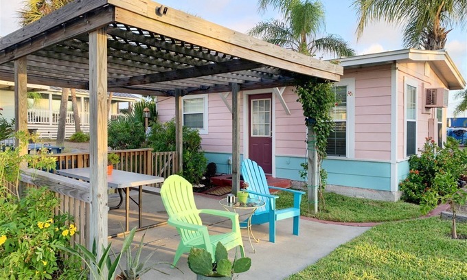 Go on a romantic fishing getaway with your special person at Coastal Cutie. This is a small studio, one bath cottage in Little Bay Club. Coastal Cutie is one of multiple colorful cottages across the street from Little Bay. Grab a cup of coffee and get cozy on the back-porch gazebo to watch the breath-taking sunrises over Little Bay. This cottage has access to a swimming pool (entrance to the pool is located on the pool fence facing Broadway st. Please see photos!) and fishing pier. Due to damages suffered during Hurricane Harvey,some units are still under construction.