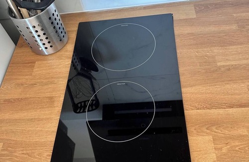 The kitchen is equipped with a combined microwave oven and induction hob.