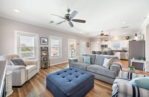 Perfect for families, couples, or friends seeking a beach getaway with all the comforts of home. The Coastal Hourglass offers a peaceful retreat just steps from the sand, complete with multiple outdoor spaces for making memories.
